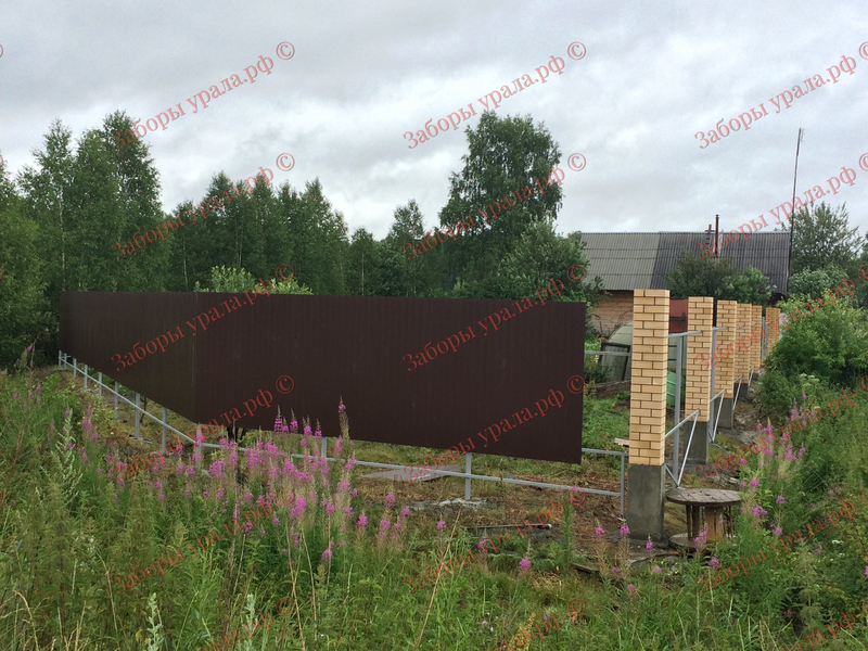 д. Ольховка (Невьянск) - забор из профлиста с кирпичными столбами 160м